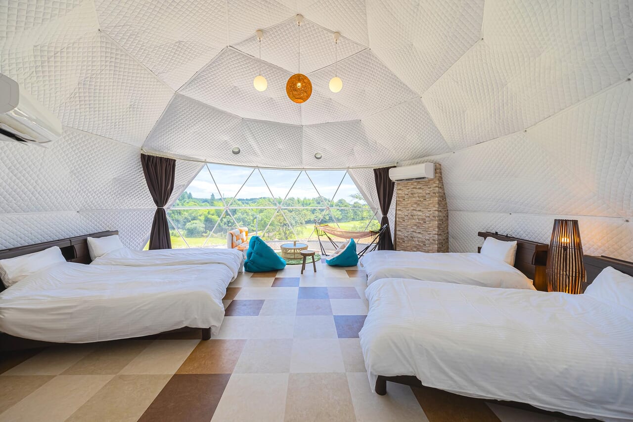 直径7mの広々としたドームテントは、大人も子供もワクワクする非日常のユニーク空間。